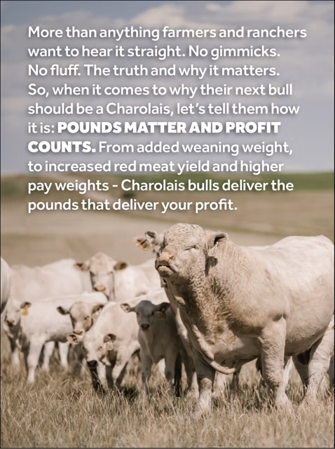Your next calf crop starts with the right bull. Choose a Charolais bull backed by CharAdvantage, and bring home more weight and more dollars. It’s not just genetics. It’s a business advantage.